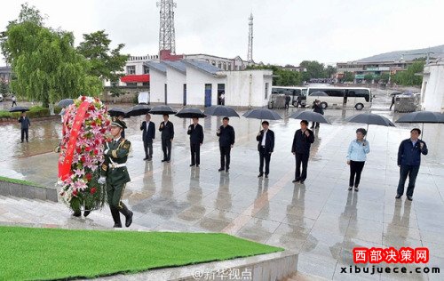 習(xí)近平考察寧夏首站到固原,冒雨向紅軍長征會(huì)師紀(jì)念碑敬獻(xiàn)花籃