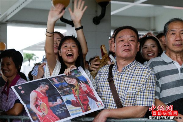 8月29日,里約奧運(yùn)會(huì)國(guó)家奧運(yùn)精英代表團(tuán)抵達(dá)澳門,展開一連4天的訪問行程,與澳門市民近距離交流。 中新社記者 張宇 攝