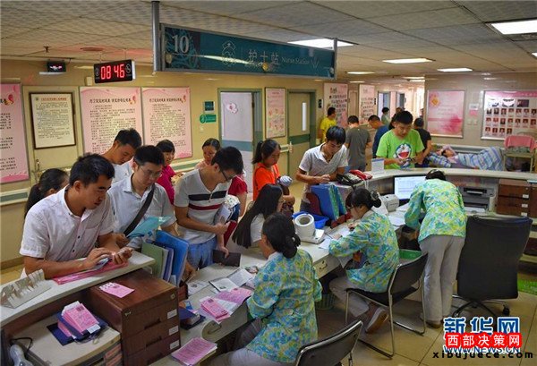新橋醫(yī)院婦產(chǎn)科護士站,站滿了前來咨詢和辦理出入院的孕婦家屬。