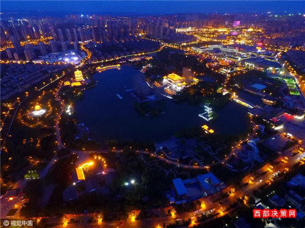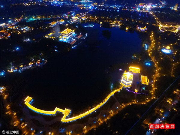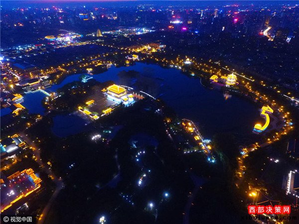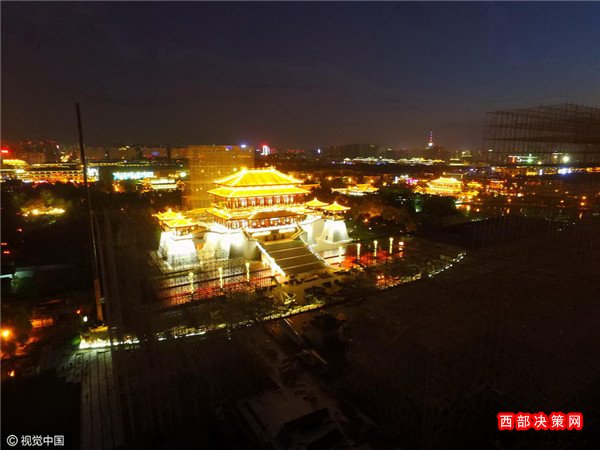 2016年08月30日,陜西省西安市,中央電視臺(tái)中秋晚會(huì)西安大唐芙蓉園分會(huì)場(chǎng)正在緊張布置中。記者從利用無(wú)人機(jī),分別航拍到大唐芙蓉園白天與夜晚的壯美風(fēng)景,如同一幅美麗畫卷,等待著中秋佳節(jié)的到來(lái)。