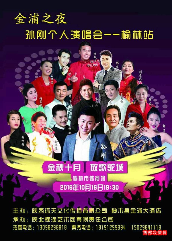 西部決策網(wǎng)榆林訊 (李建治 賀成友 石海瑞 呂正) 現(xiàn)場(chǎng)報(bào)道 塞上秋高氣爽,塞上秋色迷人。9月25上午9點(diǎn),由陜西環(huán)天文化傳播有限公司、神木縣金浦大酒店主辦,陜北煤海藝術(shù)團(tuán)責(zé)任有限公司承辦的“金浦之夜孫剛個(gè)人演唱會(huì)——榆林站”在榆林煤海大舞臺(tái)召開(kāi)了新聞發(fā)布會(huì),榆陽(yáng)區(qū)文體事業(yè)局局長(zhǎng)和60余家新聞媒體參加了新聞發(fā)布會(huì)。