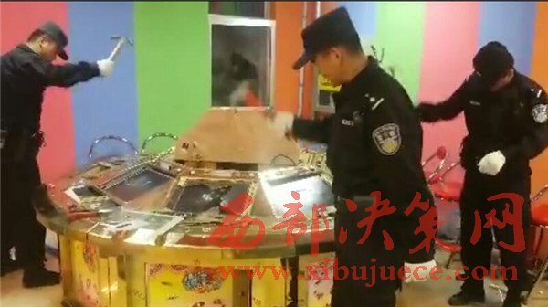 16時整,城關公安分局治安管理一大隊的警員沖進幻影游藝城,當場控制各類參賭人員30余人、賭博管理人員十余人,查獲各類熊貓機、釣魚機、單挑機等涉賭機器72臺,繳獲賭資現(xiàn)金近五萬元。警員在履行執(zhí)法手續(xù)后,對72臺涉賭機器進行現(xiàn)場銷毀,執(zhí)法有序進行,未損壞其他無關設備設施。