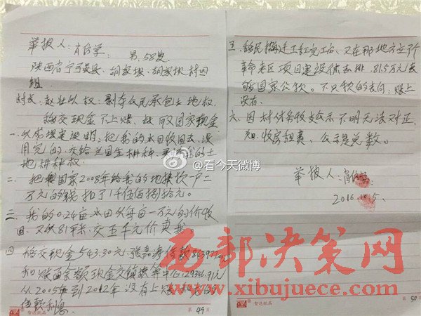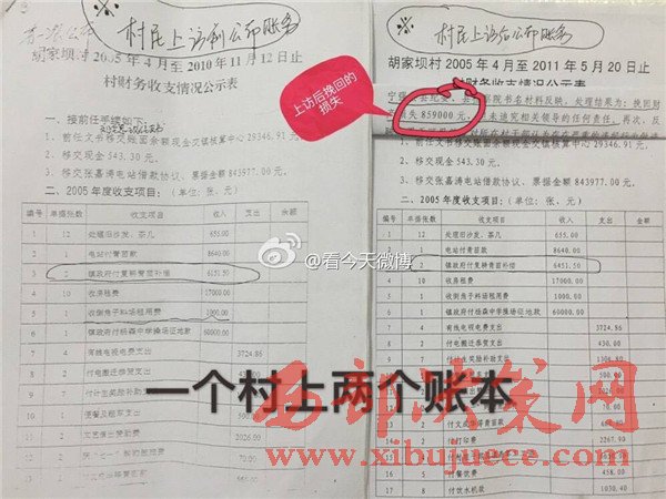 據(jù)實名舉報材料了解,早在2011年5月16日,經(jīng)群眾上訪,寧強縣縣紀委、縣檢察院就對黨支部書記劉全忠作出過處理,挽回財產(chǎn)損失859000元,但并未追究其法律責任。從胡家壩村公布的賬目來看,村民上訪前和上訪后僅“鎮(zhèn)政府付復耕青苗補償”單這一款項就有300元的出入。一個村子竟然存在兩本財政收支賬目,到底哪本賬才是胡家壩村真正的財政收支賬目呢?為什么要做兩本性質(zhì)相同的賬?會不會該村還有第三本賬?