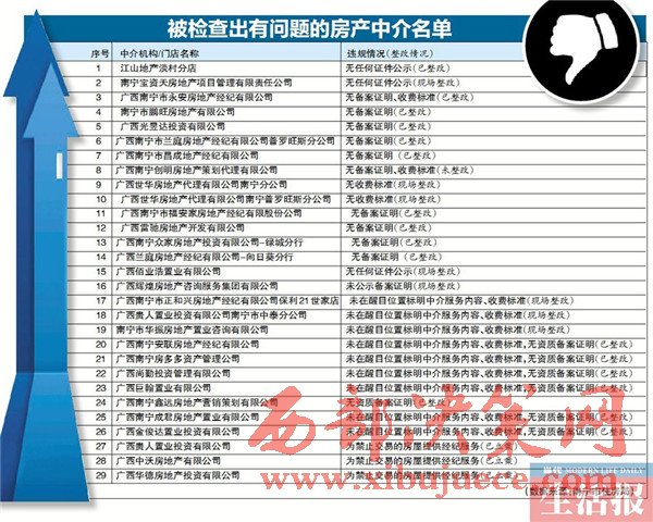 南寧市住房局通報(bào)房地產(chǎn)中介專(zhuān)項(xiàng)執(zhí)法檢查結(jié)果