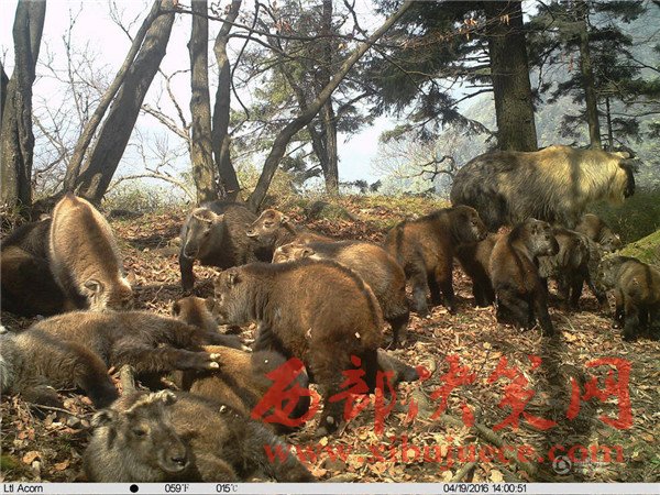 圖為此前紅外相機(jī)記錄到甘肅野生羚牛“幼兒園”集體育幼現(xiàn)場(chǎng)。
