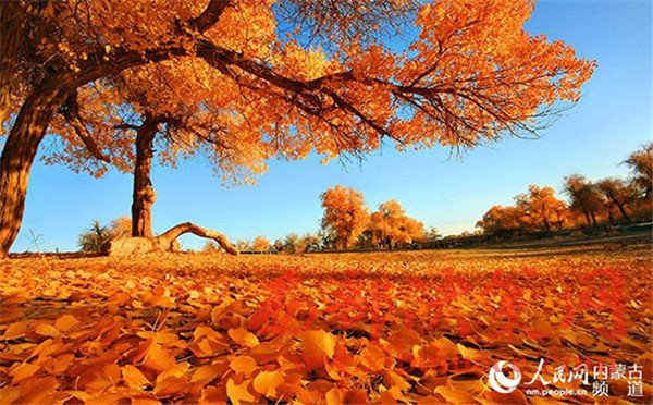 國慶小長假,內(nèi)蒙古一片秋色,這也是金色大漠胡楊林最炫麗的綻放時刻。2016中國·額濟納大漠胡楊節(jié)引爆國慶歡樂游——內(nèi)蒙古阿拉善盟額濟納旗,這座人口不足3萬的旗幾天內(nèi)接待游客超過20萬人。金色胡楊和湛藍天空交相輝映,構成美不勝收的絕色畫卷,被游客們盛贊為“中國最美的秋色”之一。