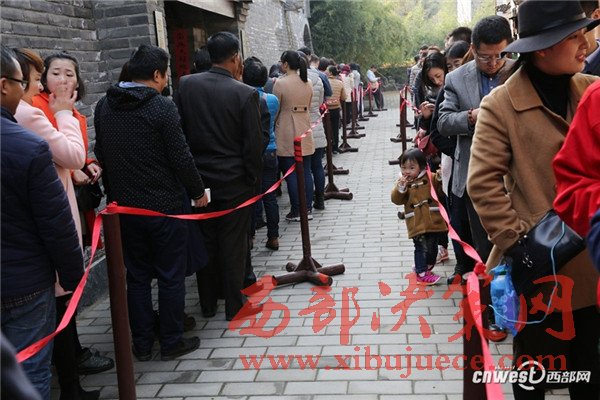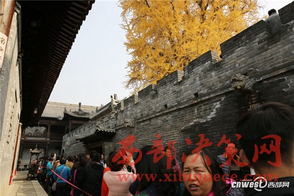 11月15日是周二,但去長(zhǎng)安區(qū)古觀音禪寺看網(wǎng)紅銀杏樹(shù)的游客還是排起了長(zhǎng)隊(duì),進(jìn)入寺廟大門跟著曲曲折折的隊(duì)伍緩緩移動(dòng)到銀杏樹(shù)前得1個(gè)來(lái)小時(shí)。在銀杏樹(shù)的圍欄里,一名工作人員用喇叭不停地提醒游客加快腳步不要停留。