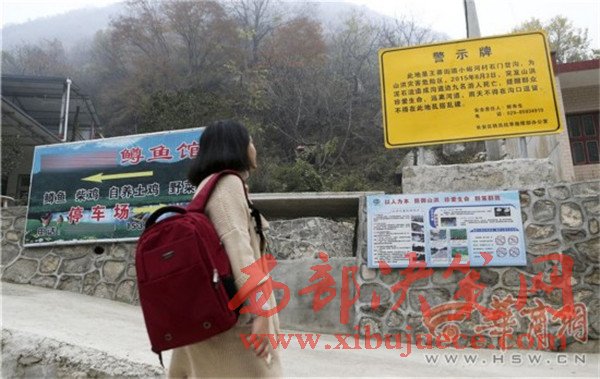 昨日上午,華商報記者來到王莽街道小峪河村涉事農(nóng)家樂,該農(nóng)家樂仍在正常營業(yè)。在農(nóng)家樂門口,立著一個很顯眼的黃色警示牌,是長安區(qū)防汛抗旱指揮部辦公室設(shè)置的,上面寫著2015年8月3日突發(fā)山洪造成九人死亡的事情,并提醒群眾遠(yuǎn)離河道,雨天不得在溝口逗留,不得在此亂搭亂建,該牌子。在警示牌下面,有一條用水泥砌成的水溝,從路邊一直通往山上,華商報記者注意到,在山坡上有水向下流出。