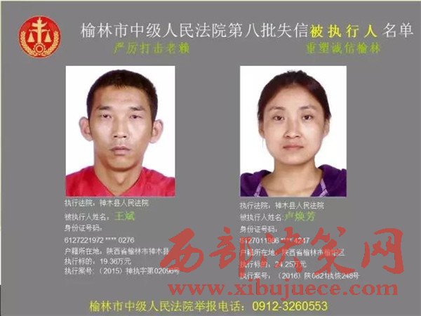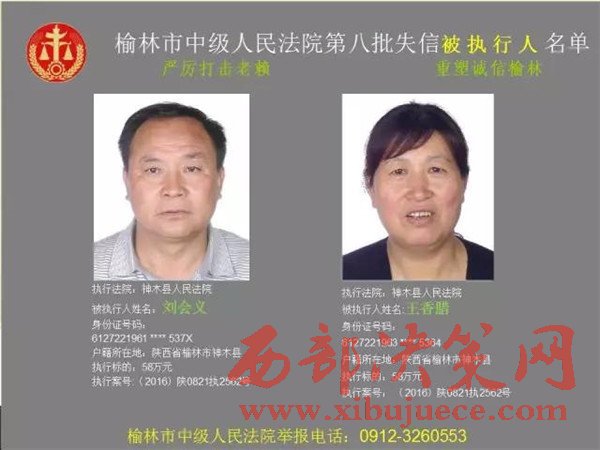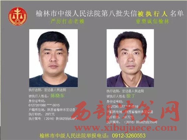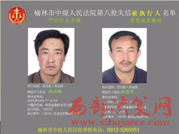 榆林中院最新發(fā)布第八批失信被執(zhí)行人"黑名單"