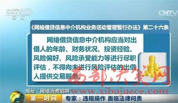 其中第二十六條明確要求,網(wǎng)絡(luò)借貸信息中介機構(gòu)應(yīng)當對出借人的年齡、財務(wù)狀況、投資經(jīng)驗、風險偏好、風險承受能力等進行盡職評估,不得向未進行風險評估的出借人 提供交易服務(wù)。參與該《辦法》起草的中國人民大學教授楊東表示,網(wǎng)絡(luò)中介平臺忽視對出借人的評估和審核,將面臨法律問責。