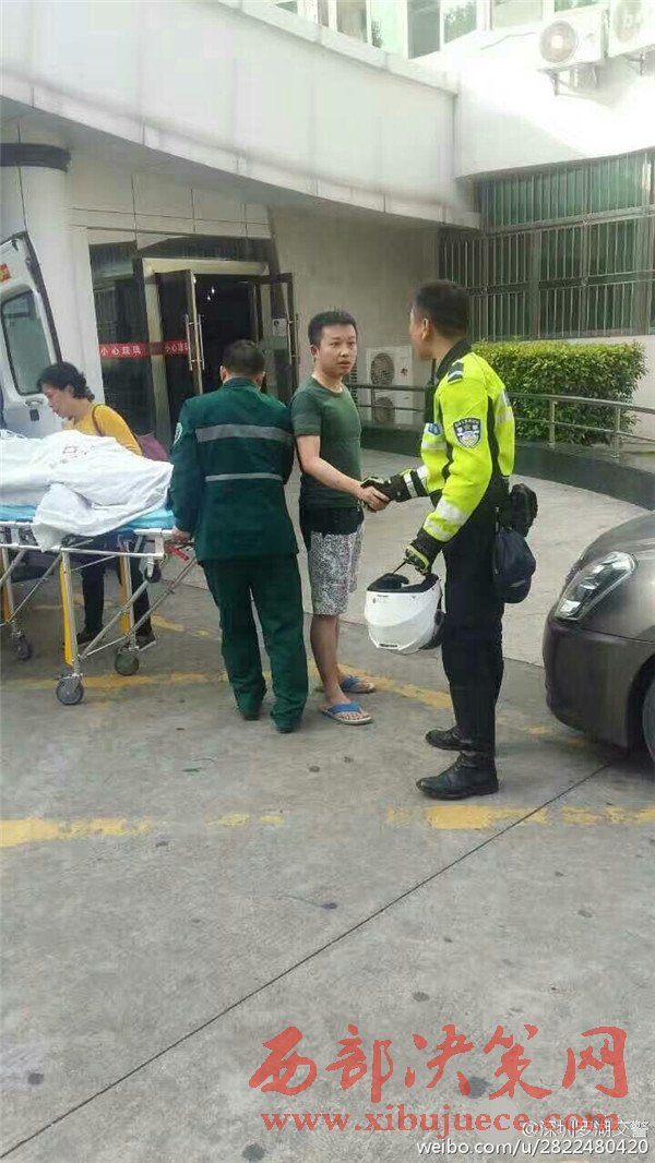 據(jù)現(xiàn)場(chǎng)目擊民眾@小蟲阿寶他爹:這輛救護(hù)車應(yīng)該走的丹平快速隧道,交警鐵騎開路,所有的車都自覺往兩邊靠,在兩排車道中間讓出了一條救命通道。我當(dāng)時(shí)就在隧道內(nèi)。圖為家屬感謝鐵騎隊(duì)員。