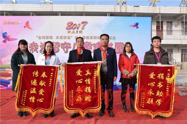 陜西省陽(yáng)光少年資助協(xié)會(huì)顧問(wèn)王余、會(huì)長(zhǎng)王鳳英、秘書長(zhǎng)溫向林、理事馬強(qiáng)、副會(huì)長(zhǎng)張弘強(qiáng)、李江、辦公室主任王芷熹、會(huì)員代表王潤(rùn)梅等;愛(ài)心人士河南電視臺(tái)睛彩中原欄目記者張文興、陜西源邦實(shí)業(yè)集團(tuán)王源、劉楊等愛(ài)心團(tuán)前往參加,為孩子們帶去愛(ài)心人士捐贈(zèng)的一批課內(nèi)外書籍,并建成“潤(rùn)鴻書屋”,藏書六百余本。此外,還為該校多名建檔立卡的貧困家庭學(xué)生送去書包、文具、手套、圍巾等學(xué)習(xí)生活用品。