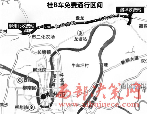 今日零時(shí)起桂B(yǎng)車(chē)可免費(fèi)通行北環(huán)高速柳州北至洛埠區(qū)間,此舉開(kāi)廣西先河