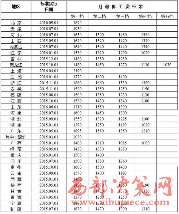 12月13日,人社部勞動(dòng)關(guān)系司公布《全國(guó)各地區(qū)月最低工資標(biāo)準(zhǔn)情況》。