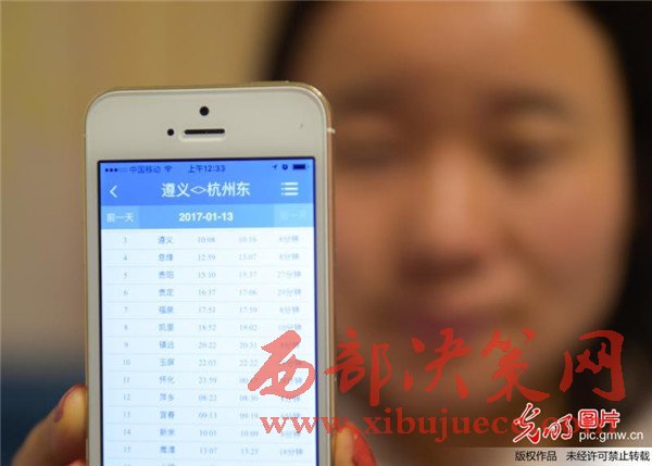 2016年12月15日,一名貴州省余慶縣市民通過手機客戶端購買春運首日的車票。