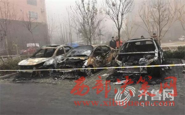 早晨六七點(diǎn)鐘,有居民發(fā)現(xiàn),停在小區(qū)樓下的幾輛汽車(chē)著火了。小區(qū)居民表示,當(dāng)時(shí)聽(tīng)見(jiàn)響,還以為撞車(chē)了,一看原來(lái)是車(chē)著了,趕緊喊救火。