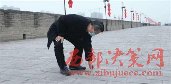西安市委書(shū)記王永康在城墻上撿煙頭