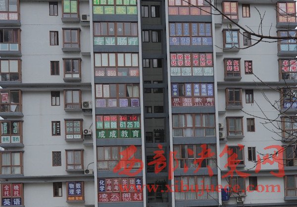 不過(guò),自搬進(jìn)來(lái)的第一天起,她感覺(jué)置身商業(yè)圈。樓道里,到處都是補(bǔ)習(xí)班的招生廣告。最令彭女士頭痛的是,學(xué)生最多的暑假,一天有五六次被敲門(mén)。