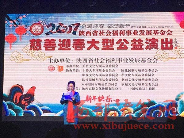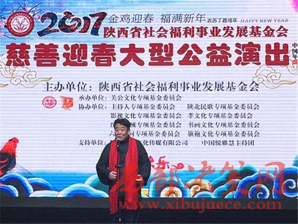 1月18日晚,由陜西省社會(huì)福利事業(yè)發(fā)展基金會(huì)主辦、關(guān)公文化專(zhuān)項(xiàng)基金委員會(huì)承辦、主持人專(zhuān)項(xiàng)基金委員會(huì)、陜北民歌專(zhuān)項(xiàng)基金委員會(huì)等協(xié)辦、陜西省民政廳指導(dǎo)的《慈善迎春》大型公益演出在蓮湖區(qū)絲路藝術(shù)劇院成功舉辦。