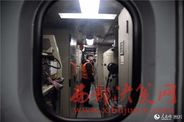 2017年2月3日,司機(jī)趙力強(qiáng)對火車頭機(jī)械間進(jìn)行巡檢。