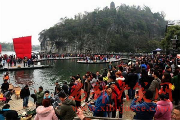 廣西桂林市象山景區(qū)內(nèi)人頭攢動