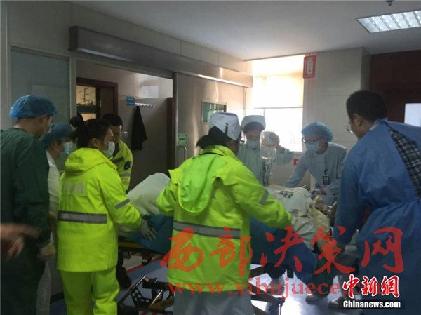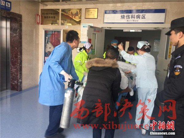 浙江大學(xué)醫(yī)學(xué)院附屬第二醫(yī)院醫(yī)護(hù)人員正將浙江天臺(tái)縣“2·5”火災(zāi)事故受傷人員送至燒傷科病區(qū)。