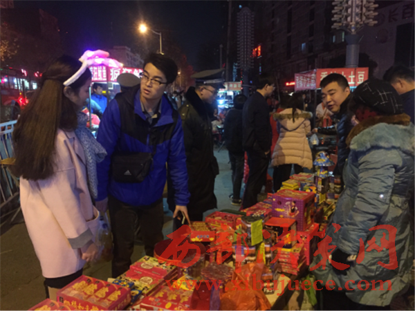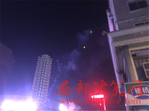 21時(shí),我社工作人員趕到了李女士所居住的長(zhǎng)安區(qū)步行街北口,見(jiàn)道路兩邊停滿了車輛,交通嚴(yán)重堵塞。廣場(chǎng)上鞭炮聲震耳欲聾,煙花四濺,空中濃煙滾滾,硝煙刺鼻。平均不到5分鐘就有一盞孔明燈迎空而上,現(xiàn)場(chǎng)圍滿了看熱鬧的市民。在現(xiàn)場(chǎng),一家賣煙花爆竹的攤位生意格外紅火,攤主在沒(méi)有任何防護(hù)措施的情況下就做起了買賣。