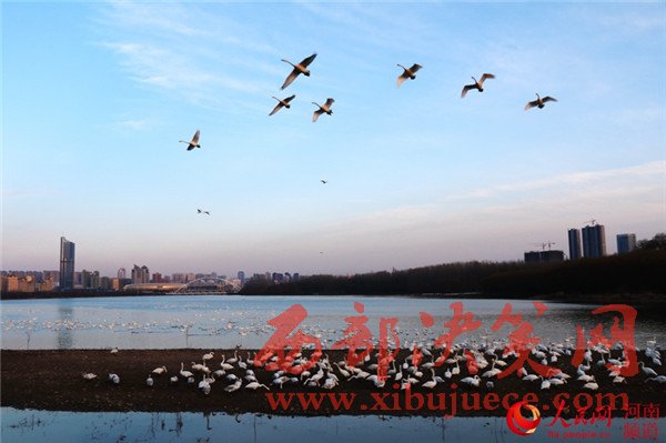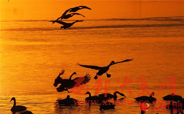 每年11月至來年2月,都會有數(shù)以萬計的白天鵝,從遙遠的北方經過長途遷徙來這里棲息越冬,因此三門峽市被譽為“天鵝之城”。在三門峽市天鵝湖城市濕地公園雙龍湖白天鵝觀賞區(qū)波光粼粼的湖面上,數(shù)千只白天鵝自由自在地飛翔,或安詳優(yōu)雅地結伴嬉戲,或溫情脈脈地交頸摩挲,或悠閑自得地以嘴梳理羽毛,或頸扎水中,翩翩跳起“芭蕾舞”。這些圣潔的仙鳥,或飛、或游、或走、或臥,千姿百態(tài),構成一幅幅美麗動人的畫面。