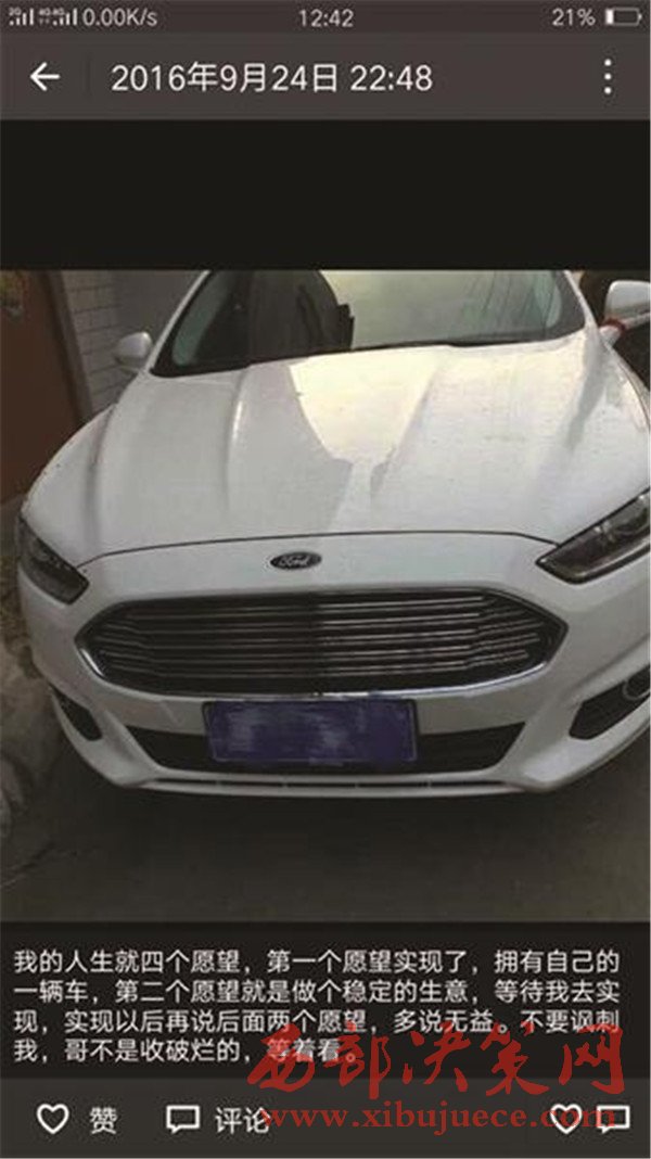 "我的人生就四個愿望,第一個愿望實現(xiàn)了,擁有自己的一輛車,第二個愿望就是做個穩(wěn)定的生意,等待我去實現(xiàn),實現(xiàn)以后再說后面的兩個愿望,多說無益。不要諷刺我,哥不是收破爛的,等著看。"