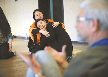 分享會(huì)上,兩名女學(xué)員依偎在一起,相互撫慰著對方。