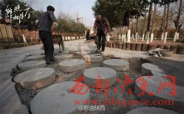據(jù)“新浪陜西”微博公布的消息顯示:在西安市長安區(qū)細柳鎮(zhèn)的一農(nóng)業(yè)開發(fā)園區(qū),有個由不計其數(shù)的磨盤鋪成的道路吸引了過往行人的目光。