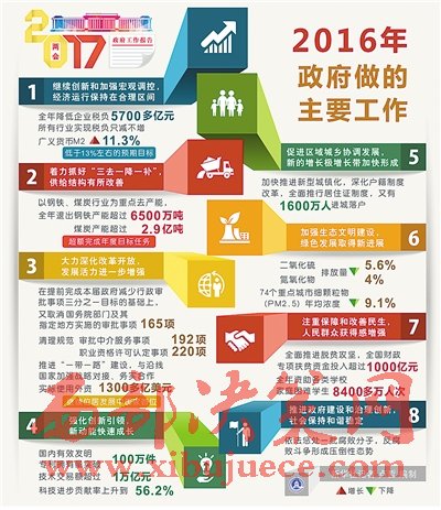 國務(wù)院總理李克強(qiáng)5日在作政府工作報告時說,過去一年,我國發(fā)展面臨國內(nèi)外諸多矛盾疊加、風(fēng)險隱患交匯的嚴(yán)峻挑戰(zhàn)。在以習(xí)近平同志為核心的黨中央堅強(qiáng)領(lǐng)導(dǎo)下,全國各族人民迎難而上,砥礪前行,推動經(jīng)濟(jì)社會持續(xù)健康發(fā)展。黨的十八屆六中全會正式明確習(xí)近平總書記的核心地位,體現(xiàn)了黨和人民的根本利益,對保證黨和國家興旺發(fā)達(dá)、長治久安,具有十分重大而深遠(yuǎn)的意義。各地區(qū)、各部門不斷增強(qiáng)政治意識、大局意識、核心意識、看齊意識,推動全面建成小康社會取得新的重要進(jìn)展,全面深化改革邁出重大步伐,全面依法治國深入實施,全面從嚴(yán)治黨縱深推進(jìn),全年經(jīng)濟(jì)社會發(fā)展主要目標(biāo)任務(wù)圓滿完成,“十三五”實現(xiàn)了良好開局。