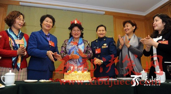 這是一次為6位女委員慶祝節(jié)日的聚會(huì),更是一次民族團(tuán)結(jié)的聯(lián)誼。6位女委員分別來(lái)自漢族、維吾爾族、錫伯族、烏孜別克族、柯?tīng)柨俗巫?,姐妹們?cè)谝黄饏⒓尤珖?guó)兩會(huì)已有5年,雖然并不在同一個(gè)界別,但大家互幫互學(xué)互助,早已結(jié)下了深厚的友誼。每年“三八”婦女節(jié)都恰逢全國(guó)兩會(huì),姐妹們相聚在一起,同慶節(jié)日,親如一家。