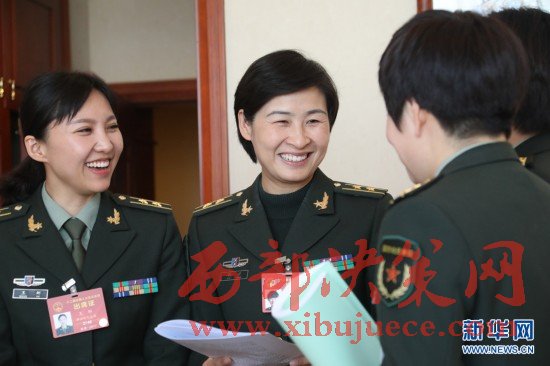 3月7日,全國(guó)人大代表劉洋(左二)等在解放軍代表團(tuán)小組會(huì)議間隙交流。在兩會(huì)會(huì)場(chǎng)內(nèi)外,女代表、女委員、女工作人員、女記者在工作中盡職盡責(zé),展現(xiàn)著自己的風(fēng)采。