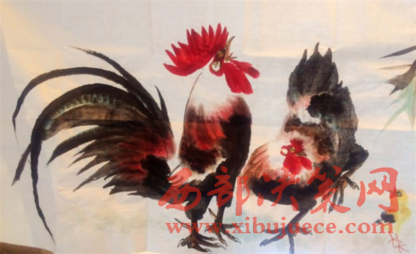 我畫(huà)的公雞被公雞鹐了:畫(huà)雞已經(jīng)成了他每天的必修課,2004年12月的一天,他下班回家吃過(guò)晚飯,到后院抱了一只公雞到屋里準(zhǔn)備觀察做畫(huà),他把公雞放在地上,由于新環(huán)境公雞的頭上下左右窺視看看四周。突然,公雞先是跳到了床上,然后從床上跳到箱子上,從箱子上飛向掛在墻上以前畫(huà)的雄雞,鹐了畫(huà)上雄雞的脖子。它把我畫(huà)的公雞誤當(dāng)成同類(lèi)了,它向同類(lèi)發(fā)起了攻擊,卻沒(méi)有發(fā)現(xiàn)那是我畫(huà)的畫(huà)。看來(lái)我畫(huà)的雞同類(lèi)已經(jīng)無(wú)法分辨出來(lái)了,我要發(fā)誓必須努力的繼續(xù)畫(huà)下去。他非常激動(dòng)的介紹到。