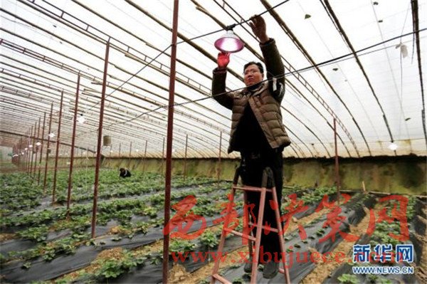 河北:農(nóng)民針對(duì)陰天及霧霾天氣在大棚內(nèi)裝植物生長燈
