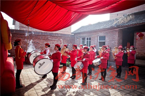 結(jié)婚是個(gè)歡鬧的事,以前都是請(qǐng)的鑼鼓隊(duì),如今改請(qǐng)一些類似軍樂團(tuán)的表演組織來烘托氛圍。