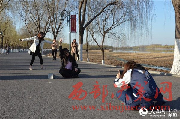 游人在大運(yùn)河森林公園的春光中拍照。