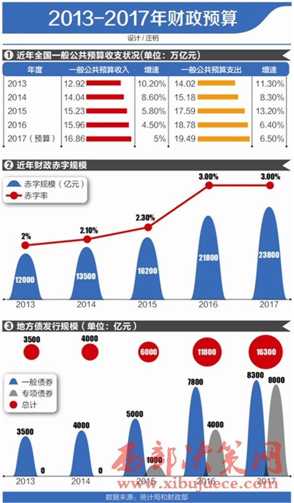 原標題:2017年政府預(yù)算收入超27萬億地方債上限提至18.8萬億