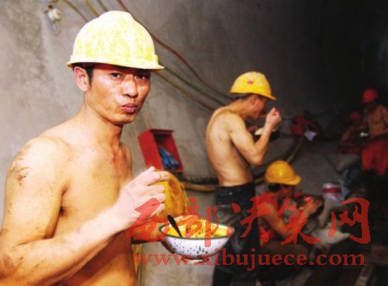 秦嶺地下40℃高溫下工作的引水人