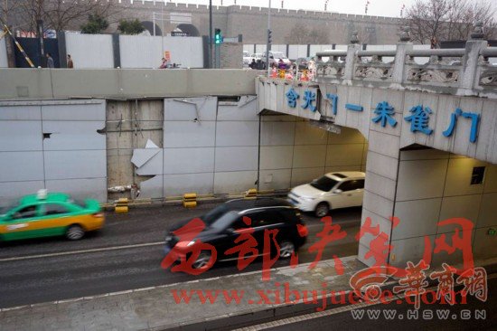 原標(biāo)題:西安男子酒后開(kāi)車(chē)掉進(jìn)含光門(mén)隧道差點(diǎn)砸中出租車(chē)