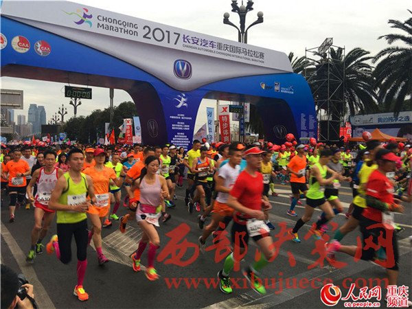 原標(biāo)題:2017重慶國際馬拉松鳴槍開跑 三萬選手參賽