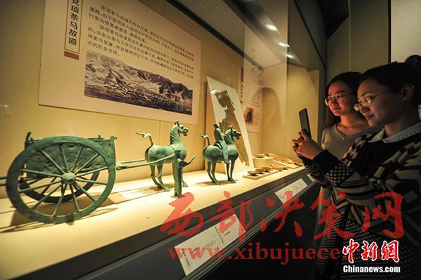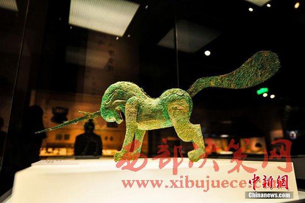 4月6日,遼寧沈陽展出的漢代青銅獨角獸,這件獨角獸出土于1956年的甘肅酒泉地區(qū)。“茶馬古道——西部八省區(qū)文物聯(lián)展”集合八省區(qū)12家博物館共計342件(組)文物,向觀眾展示“茶馬古道”這條世界上海拔最高的交通“生命線”,讓觀眾領(lǐng)略茶馬古道沿線的風(fēng)土人情。