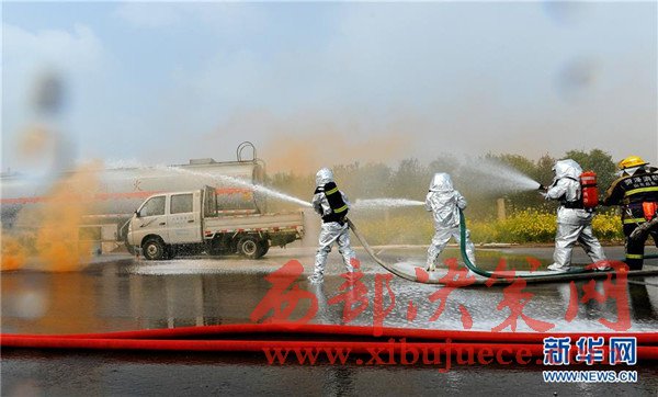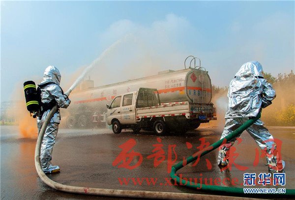 當日,山東省菏澤市消防、交通等部門為有效應對?;返缆愤\輸突發(fā)事件,提高應急救援和協(xié)調(diào)能力,聯(lián)合開展?;愤\輸企業(yè)事故應急救援演練,出動消防、救護等車輛10余臺,近百人參加演練。