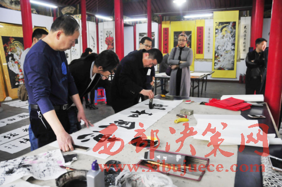 西部決策網-西部大開發(fā)訊(胡玉敏 通訊員 李海其 胡玉軍)4月13日下午,河北省邢臺市橋西區(qū)知聯(lián)會、邢臺市橋西區(qū)政協(xié)第三委員小組,在紫金公園聚義廳開展了書法文化交流活動。活動特邀我市知名書畫家現(xiàn)場揮毫潑墨,切磋書畫技藝,創(chuàng)作作品20余幅。民盟市委副主委付曉婭,橋西區(qū)政協(xié)主席張建波、區(qū)政協(xié)副主席趙振群、王之良等領導應邀參加。