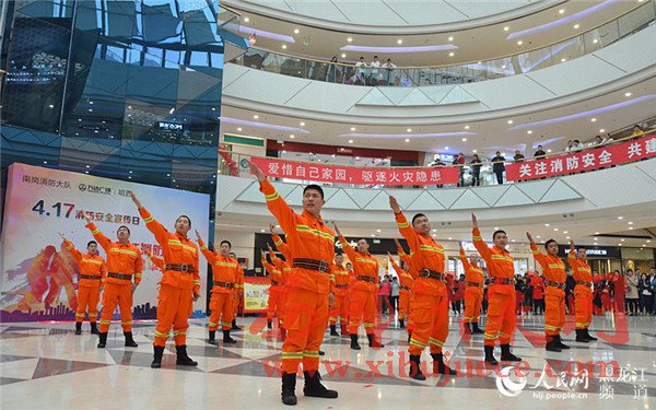 4月17日上午,在哈西萬(wàn)達(dá)廣場(chǎng)以小虎隊(duì)經(jīng)典歌曲《愛》為背景音樂的舞蹈拉開了哈爾濱市消防支隊(duì)南崗大隊(duì)2017年“4·17”消防宣傳日活動(dòng)的序幕。舞蹈的表演者全部為南崗大隊(duì)的消防官兵,歡快的樂曲和官兵們整齊的舞蹈動(dòng)作吸引了市民紛紛駐足觀看宣傳活動(dòng)。