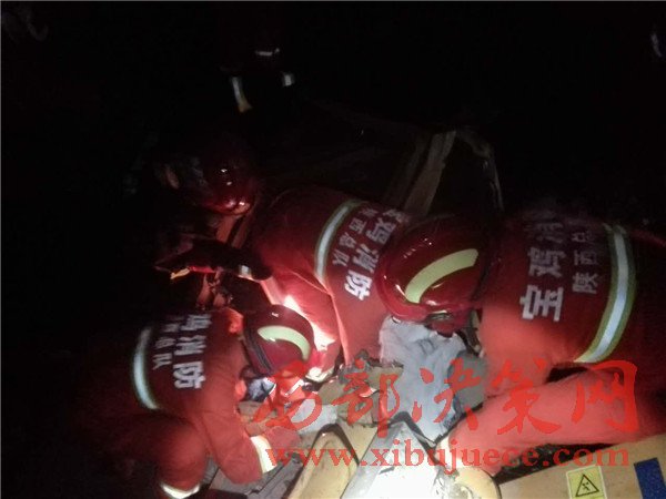 西部決策網(wǎng)-西部大開(kāi)發(fā)訊(帥華鋒 杜杰 通訊員 史璐峣))4月25日19:09分,寶雞市拓石鎮(zhèn)仙龍村一輛裝載機(jī)側(cè)翻山崖,兩名駕駛?cè)藛T被困。渭濱公安消防大隊(duì)巨福路中隊(duì)接指揮中心接警后立即出動(dòng)兩輛水罐消防車(chē)官兵12人趕赴現(xiàn)場(chǎng)。途中與報(bào)警人聯(lián)系被困人員位于20米深的山崖里,已無(wú)生命體征。