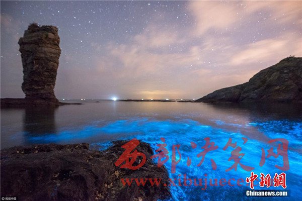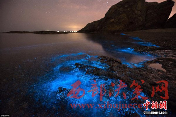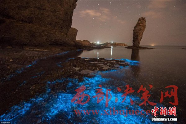 2017年4月27日凌晨,大連小黑石海域又現(xiàn)“熒光海”奇觀。(圖片來源:視覺中國)