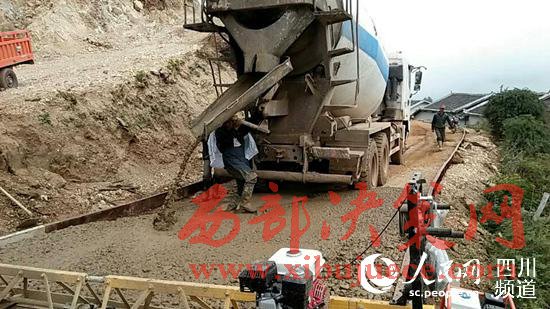 一條平坦寬闊的水泥路正一步步向遠(yuǎn)處延伸。沿公路建設(shè)工地行進(jìn),砌堡坎、填水氹……處處是干部群眾熱火朝天修路的勞動(dòng)場面。