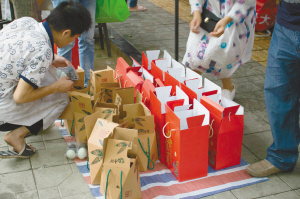 馬鞍東路“粽子江湖”的歷史大致要追溯到上世紀(jì)80年代。1980年,居住在馬鞍東路的李太婆,把自己包的粽子拿到院壩門口和附近的曹家巷農(nóng)貿(mào)市場賣,受到她的啟發(fā),“馬婆婆”周啟玉(隨夫姓,下同)拉著“梅婆婆”葉新芳和“任婆婆”張興碧籌劃起了粽子生意。那年開始,端午時節(jié),成都馬鞍東路的“婆婆粽”漸漸名聲在外。如今的馬鞍東路,到端午節(jié)前半個月就熱鬧開來。裁縫鋪、火鍋店、面館……臨街的商鋪都在這個時節(jié)改賣粽子。
